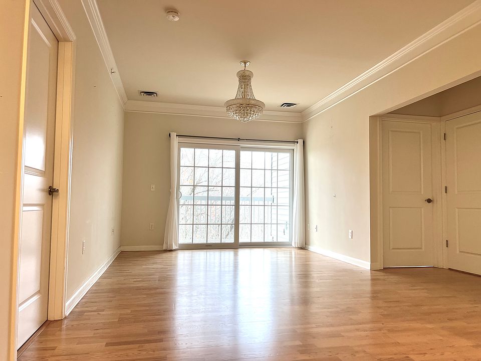 Modern, sunny and spacious 1,325 SF top level condo on the 4th floor at Woodstone Crossing in South Weymouth. Building is professionally managed and maintained. Decorated with beautiful crown moldings, its open-concept living area and dining room are perfect for entertaining. Relax and enjoy the nature views in the bright living room with sliding French doors to a private balcony. Condo has 2 bedrooms, including an oversized primary bedroom with plenty of natural light from its bay windows plus an en-suite bathroom and large walk-in closet. A second, sun-filled, spacious bedroom with a big closet is on the opposite side adjacent to a second full bathroom with a nearby linen closet. If you enjoy cooking, the modern eat-in kitchen is fully equipped with all essential stainless steel appliances that are energy efficient. Enjoy the convenience of the in-unit laundry with a washer and dryer in the spacious utilities/storage room. Condo comes with parking permits for tenant(s) and plenty of spaces for guests. Conveniently located steps away from the South Weymouth MBTA commuter train to Boston (about 30 mins) and less than an hour's drive to the Cape. Community has paved walking/running trails and is within walking distance to restaurants, a CVS pharmacy and a quick drive to Weymouth center. Flexible 7-9 months lease available now. Tenant is responsible for gas heating, electricity and Internet. First and last month's rent and security deposit ($1,000) due at lease signing.