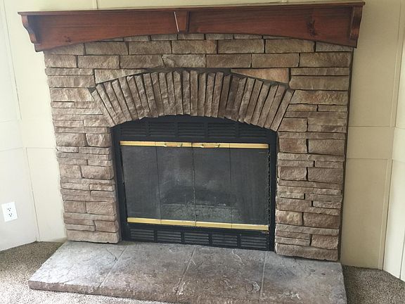 - Fireplace features: Wood Burning, Glass Doors, Rock
