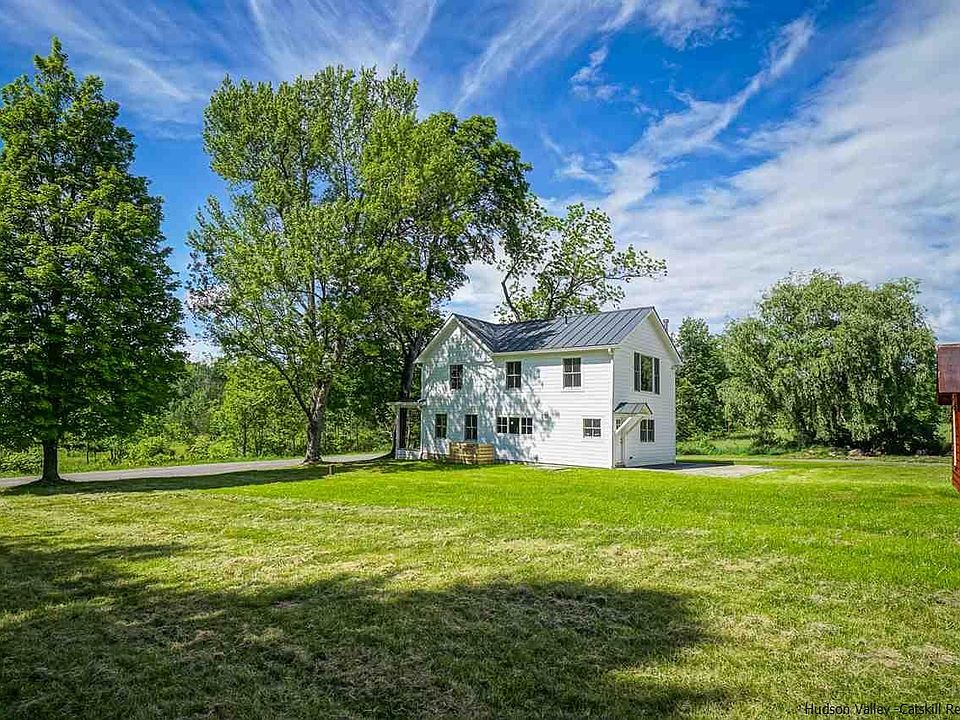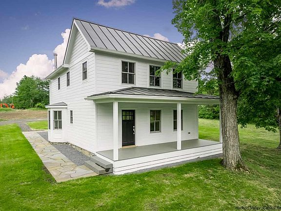 This quintessential country farmhouse on a quiet country backroad has been renovated to include modern systems and conveniences while maintaining period details. Located in sought-after Accord, NY and walking distance to Westwind Orchard and Arrowwood Brewery, this magical property is also a short drive from the Mohonk Preserve, Minnewaska State Park and the burgeoning food and art scene in Kingston. The house has been remodeled to open up the floor plan so that kitchen, living and dining spaces flow into each other, and the kitchen has been designed and outfitted to make cooking and entertaining a pleasure. Wood floors have been refinished in light tones to complement the white walls and original beams. All three second-floor bedrooms have vaulted ceilings and the spacious master faces seasonal views of the Shawangunk Ridge through a large picture window. Zoned heat-pump technology provides heat and air conditioning, while new windows throughout add to the home's energy efficiency. Two original farm buildings add to the storybook feel of the property and the surrounding meadows and farms provide open vistas in all directions.