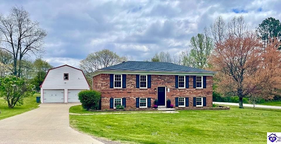Welcome home! This spacious, corner-lot home is located at the end of a cul-de-sac and has been fully renovated and is sure to impress! Inside, you'll find a fresh slate waiting for you with new GE stainless steel appliances, custom kitchen cabinets, quartz countertops, luxury vinyl plank flooring and custom tile, a Nest thermostat, a Ring security doorbell, and modern fixtures throughout. With four bedrooms and 2 bathrooms, there's plenty of room for everyone to spread out and relax. Location, Location, Location! This home is only 3 minutes from I-65, 15 minutes from the BlueOval Battery Plant, and 30 minutes from Fort Knox. Zoned for highly desirable schools. This 1.09 acre lot is actually 2 lots that have been combined into one. The detached garage has an entire loft above it that could be a Mother-In-Law Suite or even a Studio Rental that could potentiate monthly income. Don't miss out on this incredible opportunity to own this beautiful home.