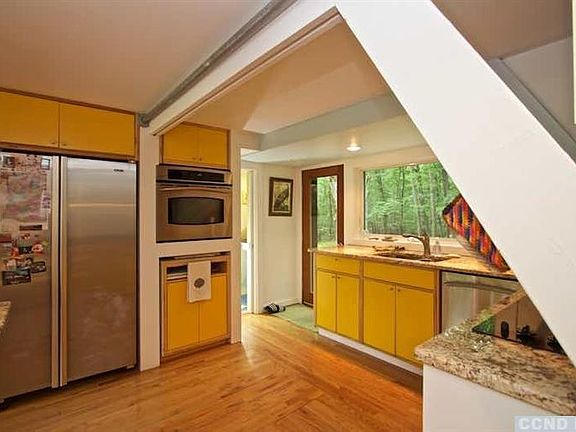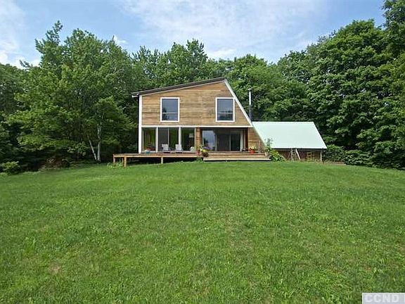 Private oasis overlooking gardens and sylvan meadows. Open floor plan with high ceilings and walls of glass to bring the outside in. Sleek and modern feel. Clean lines. Simple and elegant taste. Nice kitchen open to living room with wood stove. Perfect for entertaining. Doors to large deck. Nice baths. Great flowering trees. A very special oasis with Queechy Lake rights.