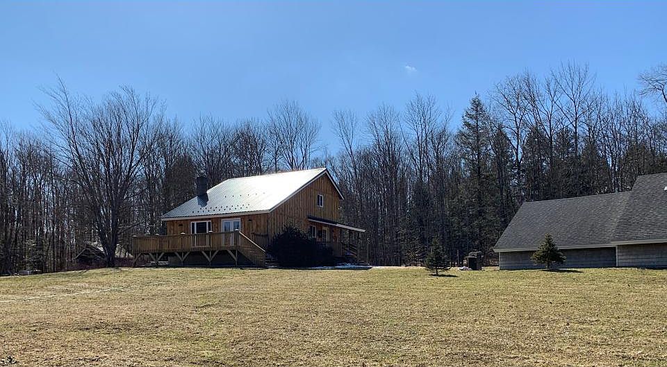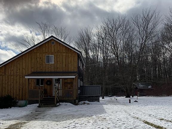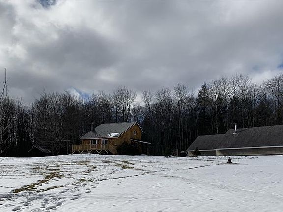 If you would like to get out in the country without going too far out, look no further. Lovely acreage on a quiet road but in 15 minutes you can be at Wegmans! Sit out on the large deck and watch the spring flowers and fall colors or inside by the large window and watch the snow! Lots of room to garden, hike and ski. Fish swim and kayak in the large stocked pond. Cozy home has updated kitchen, wood floors, mudroom w/laundry area and lots of light. Lg garage w/ 4 bays has plenty of room for workshop & barn has room for horses. New metal roof.