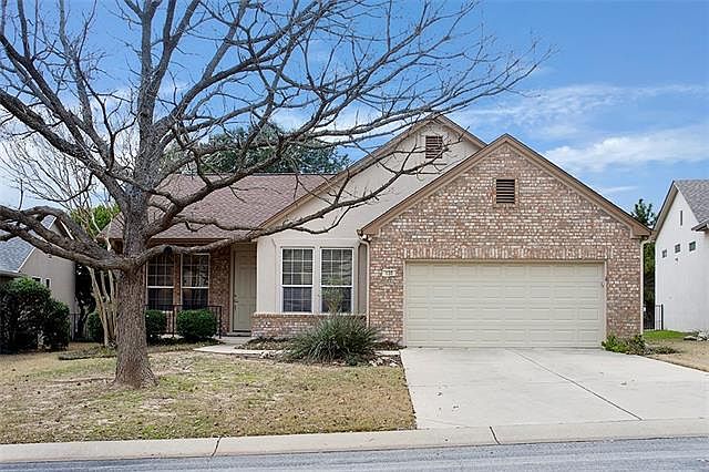 Lavaca plan: Large oaks shade front & back yards.Front porch with an 8' door is a nice place to sit n watch the deer. Living room: built-in cabinet for TV/accessories. Dining area overlooks greenbelt. An Island Kitchen/Breakfast Bar lets guests help prep food. Office/study/guest bedroom overlooks front yard & conveniently located across hall from bathroom. Bay window in Master overlooks back yard. Extended garage: cabinets, water softener, HVAC, water heater, and one small step. 1117 sf/Tax Record.