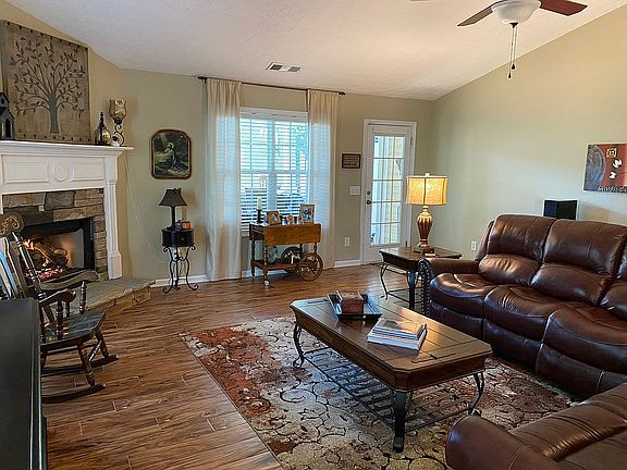 Move in ready, step less ranch. Open living area with beautiful wood plank tile, stone fire place with gas logs. Kitchen has solid surface counter tops with tile backsplash and newer appliances. Large master bedroom leads to gorgeous tile bathroom with double vanities and extra large closet. Must see screened in patio and back yard with wood privacy fence. This home has so much to offer, six year old roof, new hot water heater, five year old HVAC, newer flooring, newer appliances, irrigation system, and alarm system. Come take a look. Buyer agents welcome.
