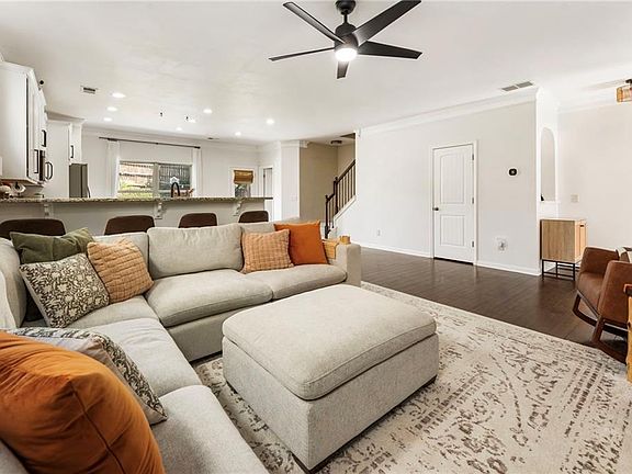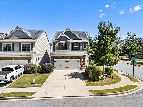 Beautifully maintained 3-bedroom, 2.5 bath home on a corner lot in the desirable Woodstock Village community. Recent updates include a new split HVAC system, fresh interior and exterior paint, new carpet on the stairs and second floor, and an updated half bath. The open floor plan features espresso hardwood floors, granite countertops, crown molding, stainless steel appliances, and white cabinetry. The spacious owner’s suite offers a sitting area, tray ceiling, walk-in closet, double vanity, soaking tub, and separate shower. Enjoy a private, fully fenced backyard with brand-new sod — ideal for kids, pets, or weekend gatherings. Woodstock Village is a kid-friendly, low-maintenance community with lawn care included and tons of neighborhood events. Conveniently located with easy access to Hwy 92, I-575, and GA-400, and just minutes from Downtown Woodstock, Roswell, shopping, and dining.