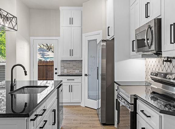 The modern kitchen features sleek countertops, plenty of storage, and an oversized pantry. Enjoy casual family dinners in the dining area overlooking the scenic backyard.
