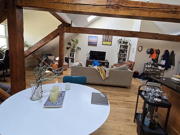 You will love coming home to this completely renovated second floor, 2 bedroom 1.5 bathroom apartment. This unit was completely built/rebuilt approximately 3 years ago, including all new walls, drywall, insulation, windows, doors, electrical, plumbing, appliances, and flooring. There wasn't one thing that wasn't touched or rebuilt during this unit's complete build. Located on the top floor (2nd) of a former mill building, many of the original structural features and charm have been maintained and restored. 1 very large bedroom, with a large, walk in closet, with a professionally installed closet system (no wire racks here!) 1 large bedroom with a good sized closet (not a walk in though) Large, open living/dining/kitchen area, with 14' cathedral ceilings and 2 skylights. Good sized kitchen with quartz counters Convection oven that doubles as an air fryer French door refrigerator Built-in microwave Dishwasher 1 huge bathroom with a tub/shower 1 half bathroom Top of the line, stacked LG laundry center Beautiful hickory floors in the living room, hallway, and bedrooms. Tile floors in the entry, kitchen, and both bathrooms. Heat and air conditioning is provided by an efficient heat pump. The tenants are finishing their residency, and are heading out of state for their fellowships, so this amazing unit is available for rent July 1st, but unfortunately not before. Pets negotiable $2,950/mo plus utilities No smoking You must have 3 years of verifiable rental or mortgage payment history in order to qualify for this unit Credit, income verification, employment, and background checks will be performed on all applicants Please reply using the "contact landlord" link. Due to the tremendous amount of spam that I receive, if you are sending an application via Zillow, you must also follow-up with a message, or else your application will not be reviewed. 1 year lease Rent includes cold water, sewer, trash, recycling, composting, snow plowing, and lawn mowing.