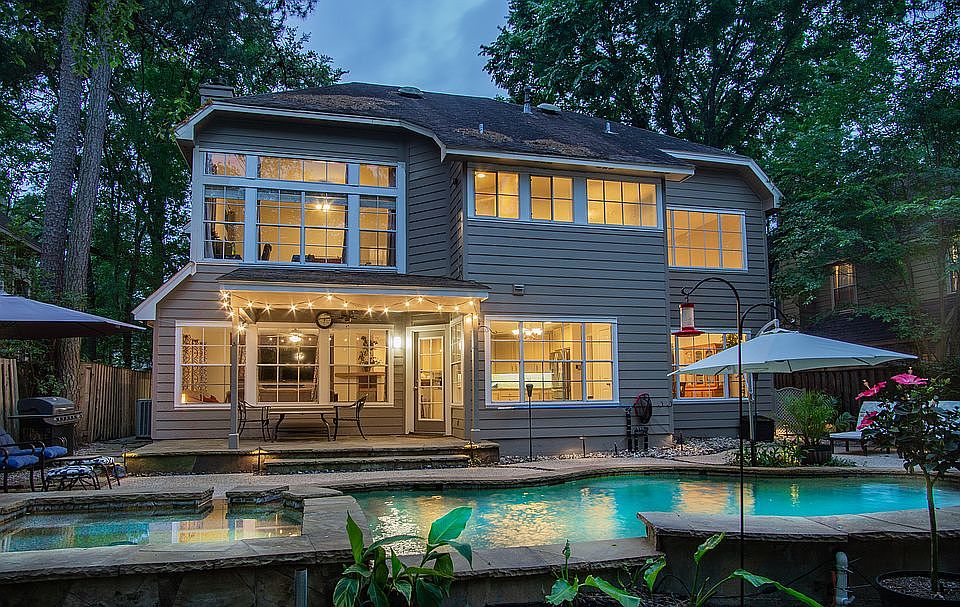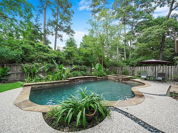 Fabulous Lifeforms Azalea floor plan is full of light! Gorgeous pool and spa in the private back yard. Brand new paint throughout with new engineered wood floors on the first floor and new carpet in the bedrooms. Recently remodeled kitchen is open to the family room. Formal dining room and living room with 2 story ceilings. Private office on the first floor. Enjoy the front porch and back covered patio. Walk to Bush Elementary! Excellent Woodlands schools. Great location. Mature trees and landscaping. Sprinkler system. No flooding!