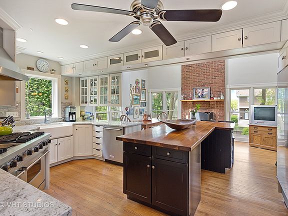 Jaw dropping opportunity in the village of Barrington, on one of the best streets in town, Lake Street. A true double lot and a timeless Victorian, has much of its original floor plan, yet many updates have been done. White kitchen cabinetry with farm sink, granite counters, stone backsplash and oversized island spills into a hearth room with fireplace, vaulted ceiling and eating area. Commercial stainless steel appliances, large pantry, hardwood floors which have been sanded and refinished. Second floor has been reworked showing off updated baths and second floor laundry. White trim, freshly painted top to bottom, including exterior. First floor library with convenient built-ins for working out of the home. Lower level has rec area and true workman's full workshop. Amazing amount of natural sunlight throughout. Third level guest area or "teen space" complete with full bath and living room. Finished heated space above the garage currently used for additional office/workout room. Newer roof, all mechanicals well maintained as well as Home Warranty from Home Warranties of America is included. A neighborhood full of activities. Rocking chair front porch provides an invitation to gather for last minute dinners or just catching up at the end of a long day. Walk with the neighbors to award winning Hough Street school, shop where "Buy Local" really means something. Family restaurants and convenience to METRA makes it a great location for real family connections. Sidewalks for bikes and games, 4th of July parties, neighborhood Ladies Night Out, recipe swaps, even Christmas gives a nod to Norman Rockwell with trees trimmed and luminaries in abundance. Gorgeous landscaping with tons of perennials, private patio with hot tub and outdoor kitchen area. Newer roof and well maintained mechanicals. A true neighborhood envied by many. In town location provides local amenities to Park District with so many programs to enjoy for the entire family...huge swimming pool with water slides, kids programs, lessons and newer health club facility and tennis courts. Come see a home and neighborhood with timeless elegance, where friendships can grow and "knowing your neighbor" still has true meaning. You really can go next door to "borrow a cup of sugar," and probably stay for a glass of wine :) Easy to show and priced for today's market.