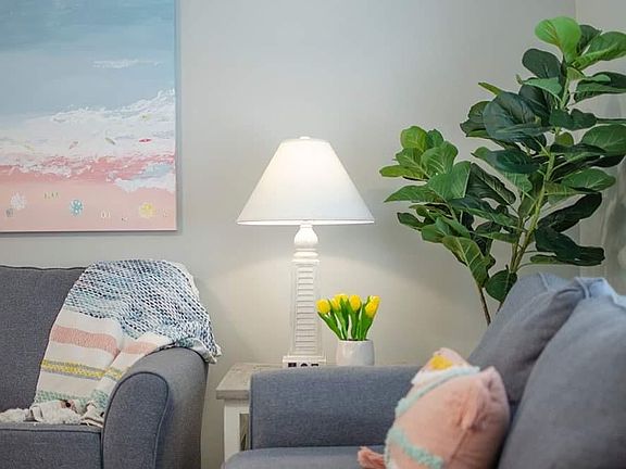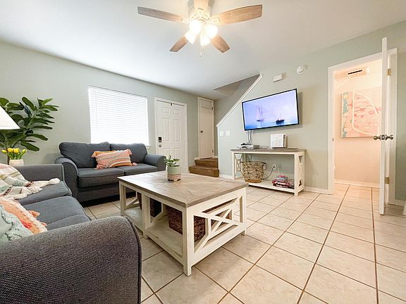Our 2 bedroom, 1.5 bathroom fully furnished home is close to popular amenities including touristy spots and medical facilities. The gated community features 11 pools (5 seasonally heated) and a beachfront pool. We're located a short 5 minute walk to the beach. Our home is clean with newer furniture and paint. No smoking/vaping on premises, no pets, no parties, zero exceptions. The fully stocked kitchen has the comforts of home, while the patio has a charcoal BBQ pit and a table and seating for 6. A half bathroom is downstairs. Two bedrooms and a full bath are located upstairs, in addition to a laundry room with W/D and a private balcony off the primary bedroom. Available Oct 1 - February 15 All inclusive. No smoking or vaping, no pets, no parties.