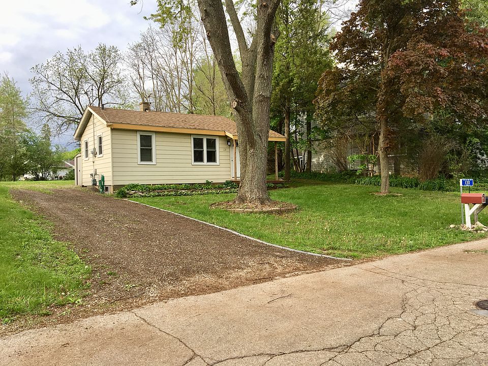 Brand new bathroom remodel and wood porch that wraps around covered side of house for relaxing outside. Recently remodeled kitchen and master bedroom , newer storage shed in large backyard with fire pit. Natural gas and electric baseboard heaters. Nice driveway and landscaping. Roof is recent , and all furniture in the house can stay ! Ready to move in !!