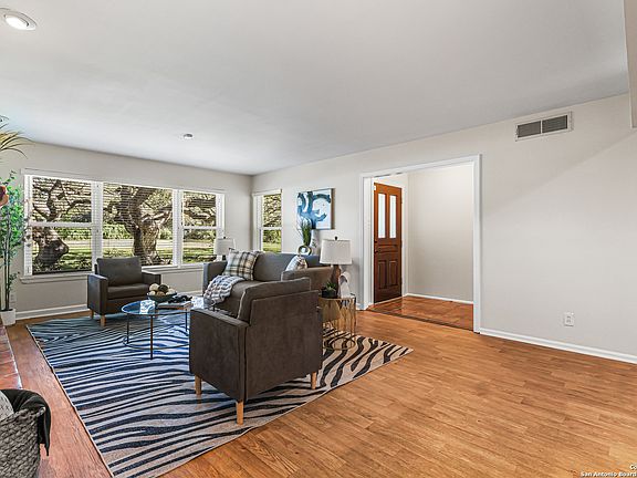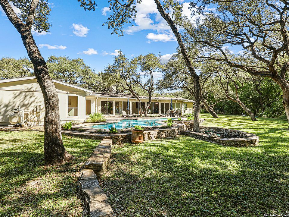 Location, Location, Location! Nestled just inside Loop 1604 in the coveted Shavano Park, this property offers a rare opportunity to own 1.22 private acres behind an electric gated entrance surrounded by mature trees, lush landscaping, and exceptional privacy-plus your very own in-ground pool! Homes like this don't come along often. This single-story home features 4 bedrooms and 3 full baths with a split floor plan designed for both functionality and privacy. The main living area feels warm and inviting with a wood-burning fireplace, while the secondary living space is filled with natural light from large windows overlooking the beautiful backyard and sparkling pool. The 4th bedroom serves perfectly as a mother-in-law suite or guest quarters, complete with its own en-suite bath, kitchenette, and private outdoor access. Don't miss your chance to own a true Shavano Park gem-a private, peaceful retreat with all the convenience of city living just minutes away!