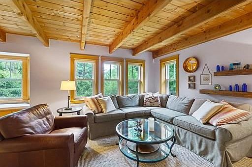 - Liv Dscrp: Flooring - Hardwood, Window(s) - Bay/Bow/Box, Ceiling - Beamed, Wood / Coal / Pellet Stove