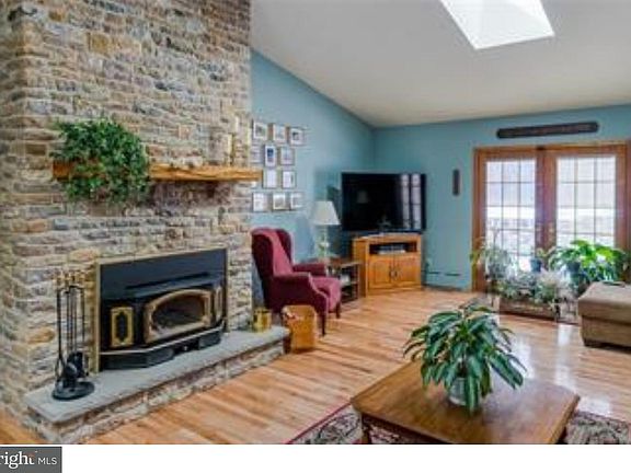 Quality, custom-built, ranch style home, with extended living quarters, cared for by original owners. 3 bedrooms, 3.5 baths. Large, eat-in kitchen with center island, stainless steel appliances, backsplash, double oven and cooktop range. Dining room. Family room with vaulted ceiling, wood-burning, stone hearth fireplace, skylights. Nearly finished basement with full bath, potential for in-law suite including kitchenette and garage. Lots of storage. Hardwood and tile floors. Pella windows and doors throughout. Partially wooded, eight acre property. Real stone exterior, large Trex deck plus paver patio, above ground pool. Plenty of garage space for parking, storage, hobbies - 2 attached, 1 built-in, 1 detached. Central air.