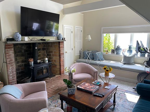 Sunny, large, furnished one bedroom cottage. Beautiful big sunset views of Long Island Sound from main floor and bedroom. Private garden, quiet private road. Wood burning stove in large fireplace. A/C. Private parking Water, sewer, mowing, plowing and propane (for range) provided by owner. No smoking. 2 months security deposit. $200/month for electric until dedicated metering installed, then you must pay electric directly. Please note closet space is limited. Cottage is best for one person.