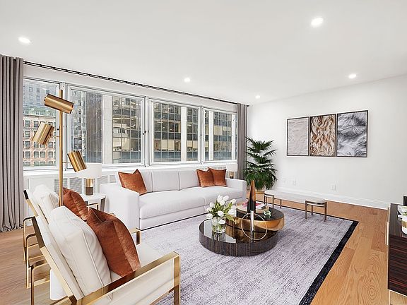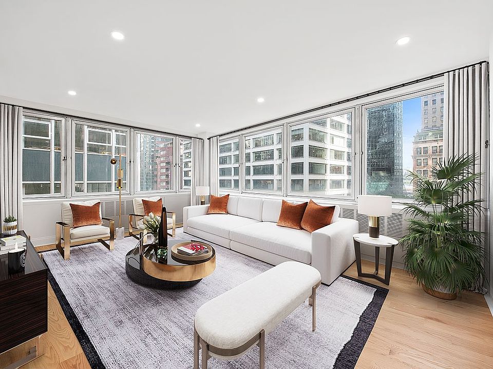 The graciously sized corner living room accommodates 2 separate seating areas and boasts oversized wrap-around windows with northern and eastern exposures and views of the East River. There is beautiful light streaming through this apartment all day!