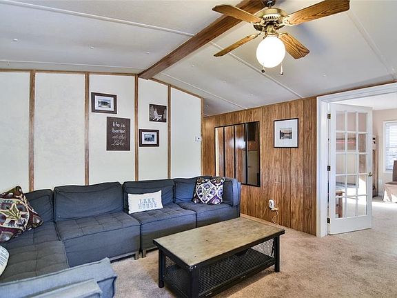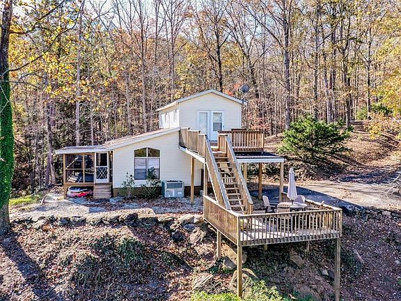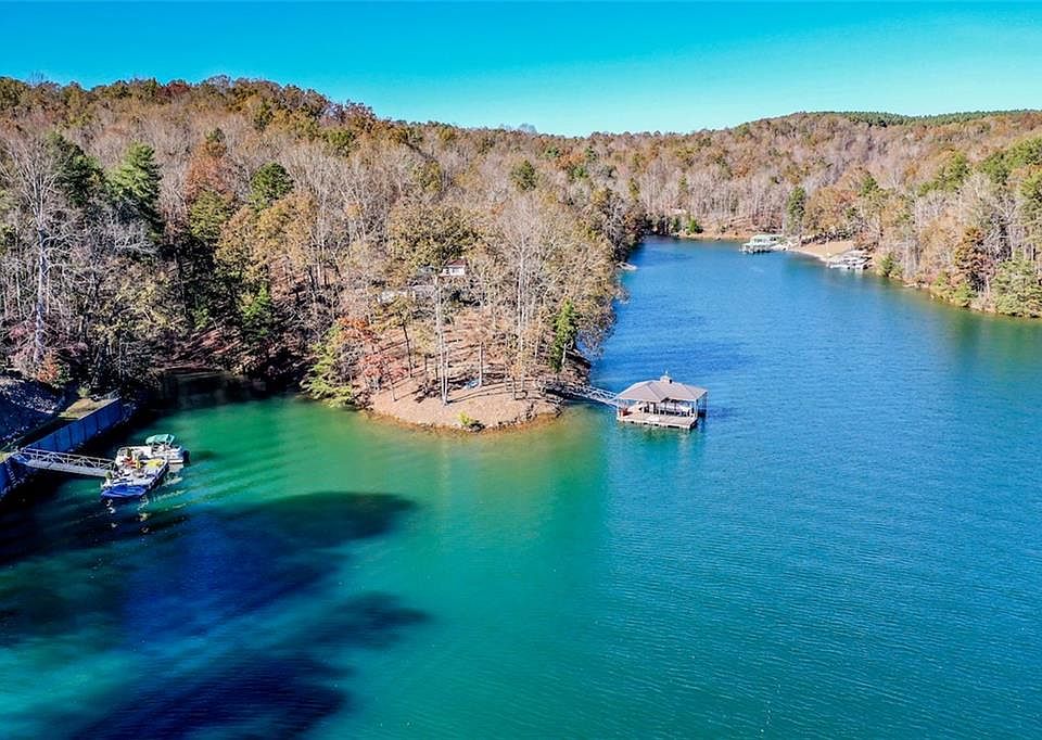 Unique, private, Lake Keowee unrestricted property on a 1.49-acre point lot, nestled in a quiet cove. Over 650 +/- feet of waterfront shoreline and 180-degree lake views with long views down the channel. The property is located across the cove from The Reserve @ Lake Keowee's Edgewater Park. 14 x 52 manufactured home with a permanent foundation, that has been de-titled, and 784 sq. ft. stick-built addition in 1999 to make a sweet little lake retreat. The original manufactured side of the home features an open floor kitchen, and living room. A hallway to the right of the living room leads to a laundry area with washer/dryer connections, 2 bedrooms, and a full-size bath. The hallway back door leads to a small porch, and backyard storage building. A doorway from the living room leads to the stick-built addition of the home. This main level, large room could be used for multiple purposes including a larger living room area for full-time family occupancy. Currently used as a Lake Keowee retreat, this room is occupied with a futon for additional seating, additional dining table, and bunk beds to accommodate sleeping more guests. On left side of the room an entrance/exit leads to the small back porch, and backyard storage building. On the right side of the room an entrance/exit leads to the attached graveled carport for easy access in and out of the home. The staircase to the right of the entrance door leads you to an upstairs loft complete with bedroom, full-size bath with walk-in shower, and walk-in closet. Bedroom includes personal entrance/exit to outdoor patio/balcony which overlooks the lake, and offers access to the deck, and carport below. Other notable features of this home include: a spacious screened porch (perfect for outdoor dining by the lake), porch lighting, and attached grilling deck to make outdoor entertaining easy. A gravel/concrete path leads from the porch to the backyard. Follow the concrete/flagstone path to a gorgeous stone fire-pit for relaxing by the water, and enjoying the long range water view on those cool fall evenings. From the fire-pit the stone path leads straight to your own personal covered dock with boat lift, SwimEze, and platform for swimming or sitting on the lake. The left side of this lot also features steps to the water's edge to enjoy fishing or swimming. If you enjoy quiet serenity, and retreat you may want to see this special spot by the lake.