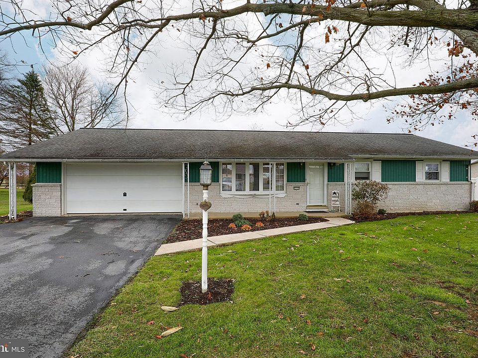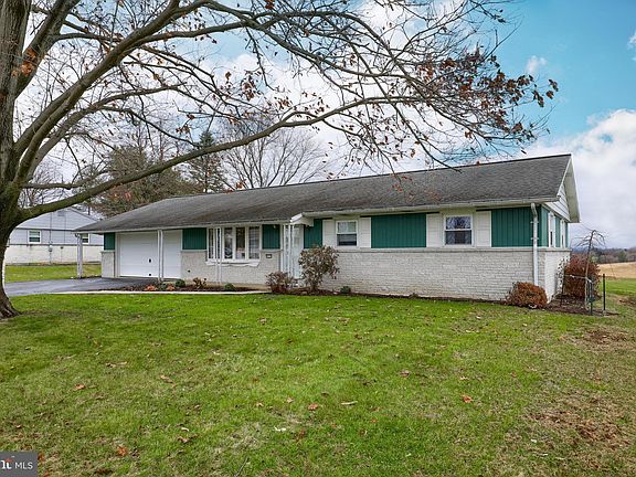 This well-maintained ranch home is a must-see! Step inside the front door to a roomy open-concept living area. The front door opens onto a slate-tiled entryway, giving way to a large carpeted living room. An elegant bow window looks out onto the covered front porch and nicely landscaped front yard, allowing for plenty of light to spill into the space. Three nicely-sized carpeted bedrooms are situated down the hall. The master bedroom, tucked into the back corner of the house, features an adjoining full private bath, with two windows allowing lots of light into the room. Two more bedrooms across the hall give lots of additional living space, with either perfect for a study or an office. Another full bath sits opposite, adjacent to the living area.In the spacious kitchen, wraparound floor-to ceiling cabinets, finished in a charming rustic stain, give ample storage space, with lots of counter space to accommodate appliances and make food preparation a breeze. A window above the attractive double-basin brushed steel sink looks out over the large backyard. The attached dining area features a chandelier-style ceiling lamp above a space large enough to easily accommodate a large kitchen or dining table. The kitchen and dining area also features vinyl flooring for quick and easy cleanup. Sliding glass doors give access to the lovely backyard. The doors open onto a covered poured concrete patio, fitted with outdoor carpet. There is ample space for grilling, and the space will easily accommodate a small table and chairs for a relaxed outdoor dining nook. Just off the patio, a firepit area beckons to fall evenings spent socializing around a crackling fire. The yard is flat and level, making lawn maintenance easy, and stretches back to adjoining farmland. The backyard also contains a t-post clothesline for line drying in the spring, summer, and fall months. The lower level of the home gives additional space and options. Finished in attractive wood paneling with a drop tile ceiling, this is an ideal entertainment space. This property also features central air, propane furnace, blacktop driveway with ample parking space, two-car garage, and easy access to Routes 422 and 501.