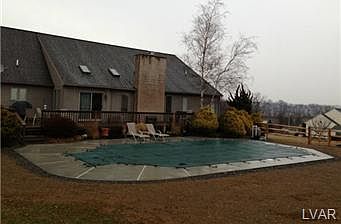 Enjoy all the amenities of being on vacation in this sprawling contemporary ranch with stone fireplace, vaulted ceilings and brand new in-ground pool. Open concept floor plan with a country flair including log interior walls in many rooms. The lower level features a walk-out entrance and high ceilings. Finish it to your desire. Many possibilities, including in-law suite or finished lower level family room. It also has rough plumbing for an additional bath. The outside includes a new 12 x 28 small barn. The pool area features a split rail fence. Close to all major highways, 15 minutes west of the Lehigh Valley. Do not miss this one.