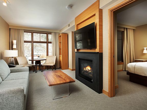 Amazing ski in/ski out whole ownership opportunity in the 4 star resort named Best Ski Hotel by USA Today. Exquisite One Bedroom Unit with lovely views of Brush Creek from your walk-out deck. This property just completed a $4 million renovation including an elegant lobby with coffee bar, two new restaurants, updated fitness center and more! Additional amenities include luxury spa, heated pool, ski valet, complimentary valet/transportation services for owners, and concierge services to name a few. Unit is fully furnished with kitchen, dishwasher, cozy fireplace, spacious bath with a tub, double vanity, washer/dryer and an owner storage locker. Enjoy this fabulous location steps away from the new Snowmass Base Village Plaza. Plus great income opportunity through the hotel rental program.