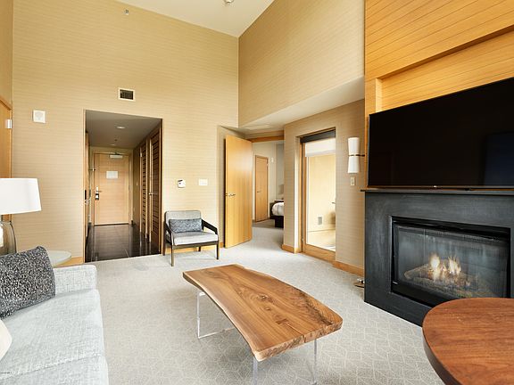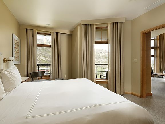 Enjoy this large one bedroom offered at the lowest price per foot with high 12' ceilings and a patio with views of Brush Creek-what an opportunity! Amazing ski in/ski out whole ownership opportunity in the 4 star resort named Best Ski Hotel by USA Today. This property just completed a $4 million renovation including an elegant lobby with coffee bar, two new restaurants, updated fitness center and more! Additional amenities include luxury spa, heated pool, ski valet, complimentary valet/transportation services for owners, and concierge services to name a few. Fully furnished with a recently completed refresh, kitchen, cozy fireplace, spacious bath. Enjoy this fabulous location steps away from the new Snowmass Base Village Plaza.