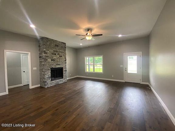 Beautiful newly constructed three bedroom two bath brick ranch style home with full unfinished walkout basement situated on .83 acre lot with scattered trees in Woodlawn Springs Subdivision. Hardwood & tile flooring, granite countertops in Kitchen & baths, Open concept floor plan & gas fireplace in the Living Room. Separate Laundry Room is a great feature. Spacious Primary suite with tiled Primary bath featuring tub/shower combo along with whirlpool tub. Two additional bedrooms & tiled Bath complete the interior of the home. Outdoor features include a covered front porch, rear deck & patio. Subdivision amenities include tennis courts & swimming pool. Located near shopping, schools & restaurants. Call today for your personal tour.