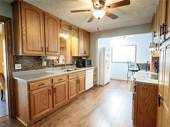 Fantastic 3 bedroom, 2.5 bathroom home in the heart of Hartville. The main level features an updated kitchen with plenty of cabinet and counter top space, a large living room with a fireplace, a formal dining room with another fireplace, a sunken family room with a door to a 3 seasons sun room which leads to a huge 16 x 20 maintenance free deck that's perfect for entertaining family and friends. Also on the main level is a 1st floor bedroom and an updated full bathroom. Upstairs features 2 more ample sized bedrooms and another updated full bathroom. The full basement has a bathroom with a shower, a laundry area and plenty of room for storage. The back yard is your own private oasis having a gravel fire pit with string lighting surrounded by a 6' privacy fence. This a perfect spot for those bonfires on a cool fall evening. Other features include all new LVT flooring throughout, new light fixtures, fresh neutral colored paint throughout, an oversized 2 car garage with opener, 3 storage sheds and more. This is a great home in a great location and there is nothing to do but move in and enjoy.