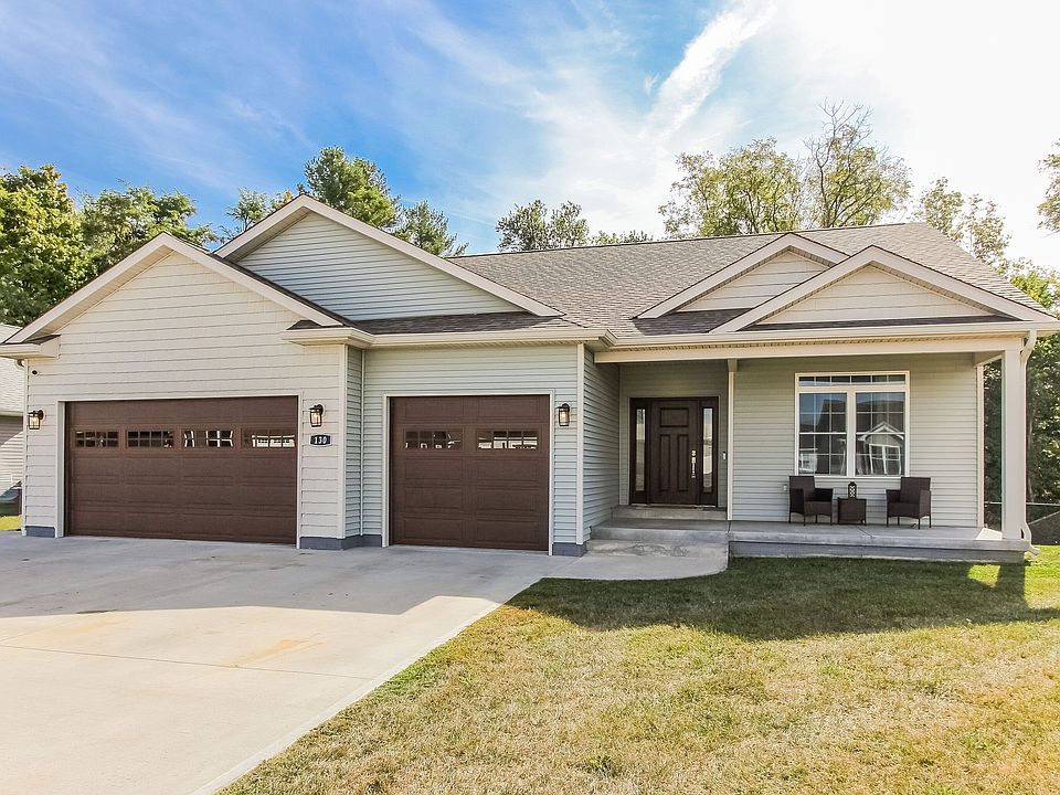 Nestled at 130 Woods Edge BLVD E, GREENCASTLE, IN, this single-family residence in Putnam County presents an attractive property in great condition, awaiting its fortunate new owner. The living room is a captivating space, showcasing a beamed ceiling, a coffered ceiling, and a tray ceiling, creating an atmosphere of architectural interest. The kitchen features stone countertops and shaker cabinets, complete with a kitchen bar and a kitchen peninsula, making it an ideal space for both meal preparation and casual dining. The bedroom offers a tray ceiling and an ensuite bathroom, providing a private retreat within the home. The bathroom includes a double vanity and a tiled walk-in shower, offering a spa-like experience for relaxation. A bar with shaker cabinets provides a stylish area for entertaining. The property also includes a porch, patio, open floor plan, laundry room, deck, balcony, and walk-in closet. With 5 bedrooms and 3 full bathrooms within 1886 square feet of living area and a generous 14810 square foot lot with fenced in back yard, this 2021 build offers an exceptional opportunity to embrace a modern lifestyle. This open and spacious basement is ready for you to make it your own as it also hosts 2 bedrooms, a full bath and bar area.