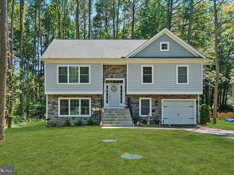 Stunning split-foyer home in the desirable Kent Island Estates community boasting 4 sprawling bedrooms, 3 full baths, and design-inspired features throughout! Coastal style emanates throughout with a bright and easy flowing floor plan all bathed in sunlight and embellished by a soft neutral color palette. The spacious living room provides a wonderful space to entertain family and friends, hosting a cozy gas burning fireplace. Just off the living room is the eat-in kitchen featuring granite counters, stainless steel appliances, ample cabinet space, and a breakfast bar island. Enjoy formal or casual meals in the dining room nestled beside the kitchen, embellished with sliding glass doors overlooking the rear yard and lush landscape. Relax and unwind in the primary bedroom adorned with plush carpeting, dual closets, and en-suite bath with dual vanities. Two additional bedrooms and a full bath conclude the main level sleeping quarters. Travel downstairs to find an expansive family room, a fourth bedroom, a full bath, laundry room, office, and access to the garage. Visit Historic Stevensville Arts & Entertainment District to shop antiques, visit historic sites such as the historic Kent Manor Inn. You will have your choice of two public beaches and fishing piers offering endless opportunities to walk the beaches, look for sea glass, enjoy a picnic or family cookout while taking in breathtaking sunsets and views of the bay. Close proximity to Terrapin Beach Park. Just minutes away from the Chesapeake Bay Bridge, Rte 301 and Annapolis. An absolute must-see! Updates: Fresh paint, new washer/dryer, added playground
