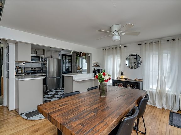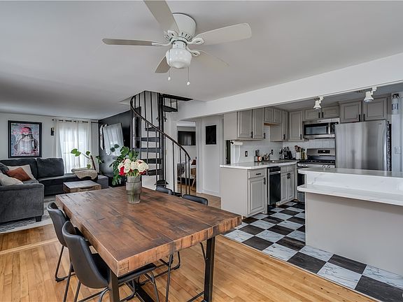 Check out this beautiful three-bedroom home with an open living and dining area, move-in ready with one and a half bathrooms. It includes hardwood floors, a first-floor master bedroom, and spiral stairs that lead to the second-floor bedrooms. The back patio overlooks a fenced-in backyard, and there is a garage for your convenience. The partially finished basement has a half bathroom and is perfect for recreational space with plenty of storage.