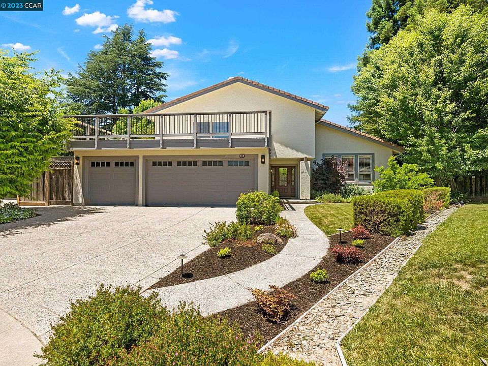 Welcome to this updated home situated at the end of a quiet cul-de-sac in the sought-after Danville Station neighborhood. The living room exudes elegance w/ its vaulted ceilings, plantation shutters, new carpet & new paint seamlessly flowing into the formal dining room, creating an ideal setting for hosting. The eat-in kitchen is equipped w/ beautiful cherry cabinetry, SS appliances, granite counters & eating nook. An oversized kitchen window overlooks the lush backyard w/ a retractable awning providing shade. Gather in the family room offering a wood-burning fireplace, built-in cabinetry & access to the outdoor patio. There is a convenient downstairs bedroom & full bathroom for accommodating guests. Retreat upstairs to the primary bedroom featuring dual closets, sliding glass door that opens onto a rooftop deck & remodeled bathroom boasting a walk-in shower. Across the hall, you will find 2 additional bedrooms that share an updated hall bathroom. More highlights: a dedicated laundry room & spacious 3-car garage. The lushly landscaped backyard features a spacious Trex deck for entertaining, grassy area for play, lemon trees & outdoor storage shed. Community facilities: pool, playground, clubhouse & lighted tennis courts. Close to top rated schools, FWY & Downtown Danville.