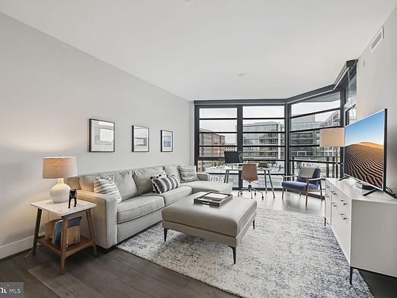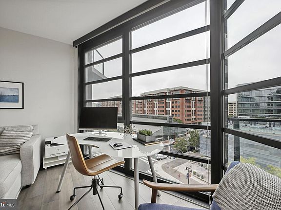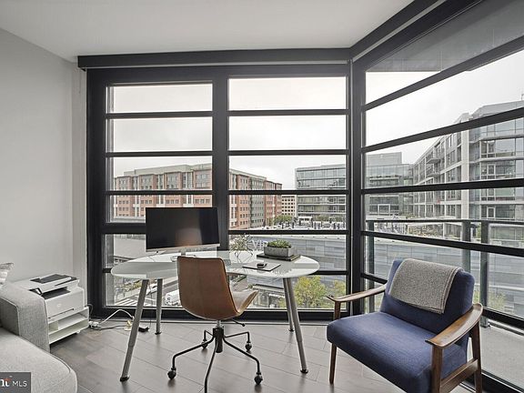This sophisticated one-bedroom, one-bathroom condo in Navy Yard offers a blend of modern design and luxurious finishes, perfect for urban living. Overlooking the ViDa pool this spacious, open floor plan is flooded with natural light, thanks to stunning floor-to-ceiling windows and a unique wall of windows in the living room that opens to your private balcony. With approximately 9-foot ceilings and wide-plank hardwood floors, the space feels bright and airy. The contemporary kitchen is equipped with Bosch appliances, sleek Italian cabinetry, and a large kitchen island—ideal for entertaining. Storage is abundant, from the oversized coat closet to the expansive primary closet outfitted with Elfa shelving. Unit 609 conveys with one deeded GARAGE PARKING SPACE. The Bower is a full-service condominium that offers incredible amenities: 24/7 concierge services, an expansive roof terrace with grills and outdoor dining areas, a large rooftop party room, well-equipped fitness center, and bike storage. Located in the heart of Navy Yard, with endless options for dining, coffee shops, grocery stores, fitness centers, sports and concerts at Nats Park, and more.
