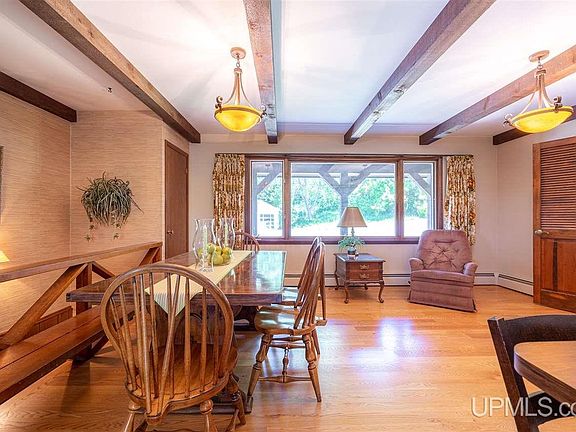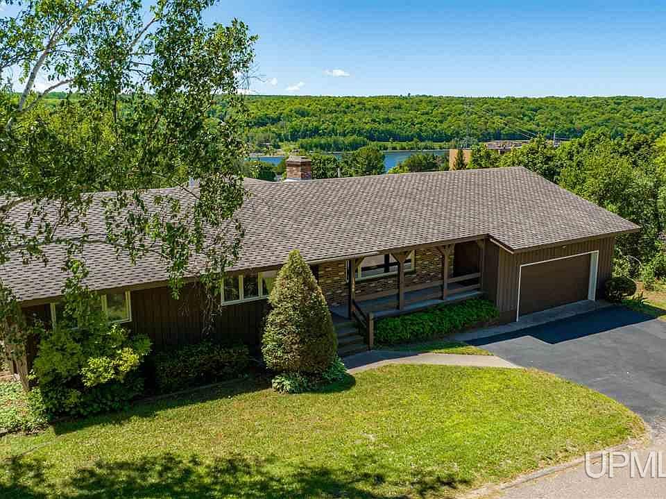 A sophisticated yet very comfortable home custom- built in the highest standard of the period (1970's), where excellence was the standard.......the home has clearly been a setting for a quality lifestyle........for family and entertainment....the kitchen will feature a new range, refrigerator and dishwasher and has a great work flow, open to the dining area and dining room....and impressive cabinetry to include a china hutch......the huge living room features a wall of windows to to the magnificence of the landscape and seasonal view of the Portage Canal, with the added ambience of the wood fireplace. The 10 x 20 deck is accessed from this room (picnic table included), and it's guaranteed to be a favorite setting, protected by an overhang, for total enjoyment of the view. It is evident that all decor choices are of the finest quality. There are three bedrooms and two baths on the main floor. The family recreational and gathering area are in the basement and designed to enjoy......the pool table will stay in the game room.....the family room features a large space complete with a bar and a wall of windows to the view ..access to the back yard concrete patio area from the two exit doors... the yard can be a great playground...all of this in a great neighborhood with easy access to the City of Hancock amenities, shops, restaurants, hospital and schools.