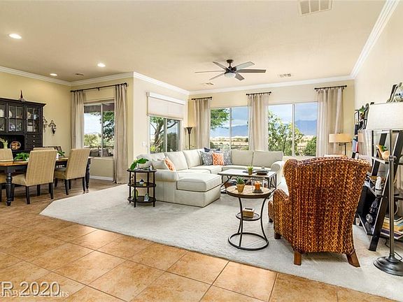 Oasis in the beautiful Southern Nevada desert with a VIEW! Located in desirable Prominence in Sun City Mesquite 55+ community. Check out the beautiful unobstructed view from this .23 ac lot. Home is 3 bedroom + den Willow model not longer offered by the builder. Interior with main living space crown molding and 10 ft ceilings. The beautiful tiled entry opens to the Living/Great room. Kitchen w/ granite counter tops SS appliances including a Mico-hood, built in oven, pull outs in the custom cabinets, island, Breakfast bar & nook. Master Bed w/tray ceiling looks out to the backyard. Central 3 Zone HVAC. Oversize 21x25 garage with room to fit your Golf or recreation equipment! Beautifully appointed back yard with fig, pomegranate trees and a raised garden bed. HOA includes World Class Pioneer Recreation Center Indoor/outdoor pools, game and craft rooms,18-Hole Putting Course, indoor walking track, fitness center and discounts to the Conestoga Golf Course.