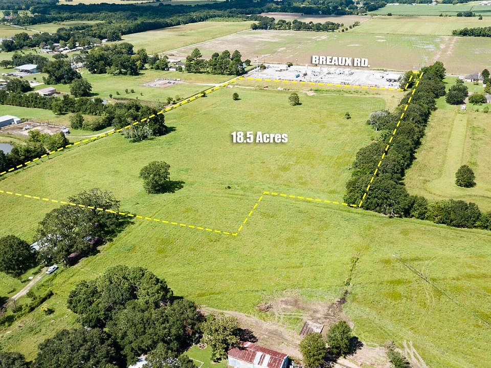 Undeveloped 18.5 acres in Lafayette Parish off of Breaux Rd listed BELOW appraisal value. Property appraised for $292,000 in Jan 2021. Sellers are open to looking at all offers. Road frontage is a small section at 1322 Breaux Rd. Property lines on pictures are approximate.