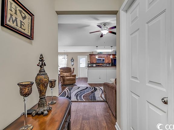 Introducing the newest listing of the wonderful St. John’s Ridge community. As you enter this home, you'll immediately be captivated by its impressive features. The grand vaulted ceilings and windows invite an abundance of natural light, creating a welcoming atmosphere. The open and spacious floor plan ensures seamless flow, making it ideal for both entertaining and everyday living. The kitchen is a thing of beauty, boasting ample cabinetry, appliances, and a convenient pantry. An adjoining dining area offers a lovely view of the backyard. Throughout the living room, guest bedrooms, and primary suite, you'll find luxury vinyl plank flooring. Ceiling fans have been installed in all bedrooms to ensure comfort and ventilation. The primary suite is a tranquil retreat, complete with a generously sized walk-in closet and a master bathroom featuring a walk-in shower. Two additional bedrooms share a full-sized bathroom, completing this remarkable home. For added convenience, there is extra storage space accessible via a pull-down ladder above the two-car garage that has also been widened for increased garage space. A full security system, garage door warning system, rear patio, and an insulated garage/garage door are just a few of the upgrades this home has to offer. Nestled in the picturesque Conway, South Carolina, this beautiful home is ready for your ownership today. Just minutes away, historic downtown Conway awaits, offering a delightful array of shops, restaurants, and activities. Downtown Conway not only offers a diverse selection of shops and restaurants but also boasts the scenic River Walk. This path allows you to stroll alongside the serene Waccamaw River, where you can immerse yourself in the beauty of South Carolina's awe-inspiring skies and enjoy the sight of nature that surrounds you. Make it a priority to visit this home today before it is too late and discover the home you’ve been dreaming of.