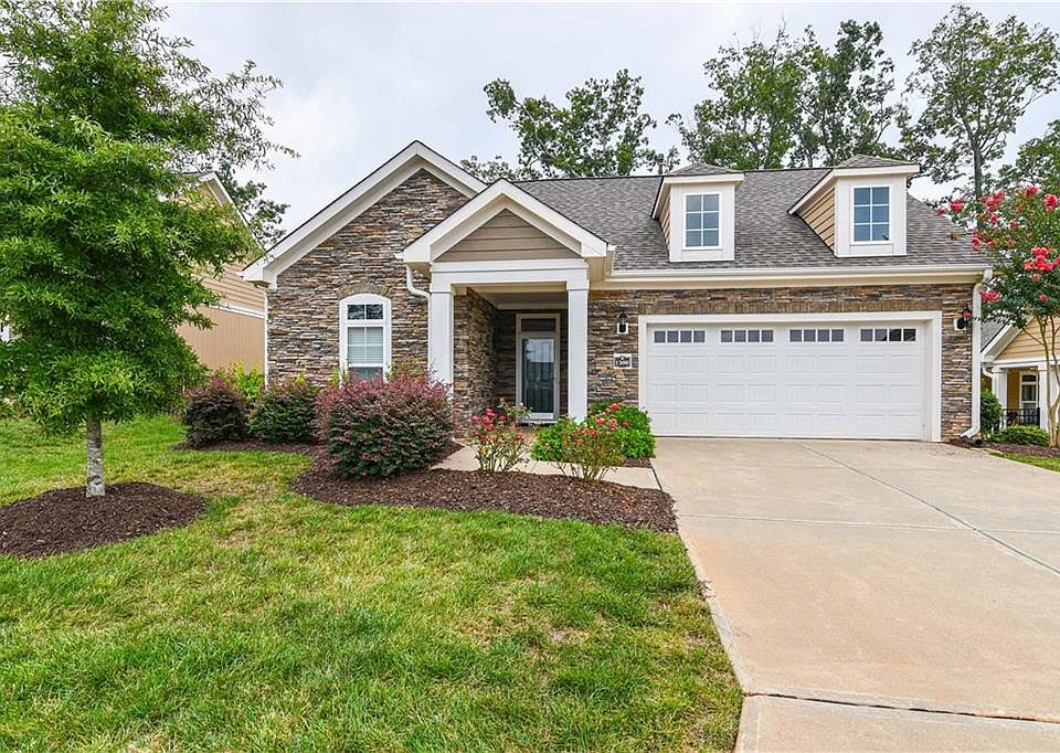 Easy Living. One owner Open floor plan that includes spacious kitchen with lots of cabinets & counter space. Nice Island with pendulum lighting, large living room, generous dining with doors that lead to 17x15 patio as well as a 16x10 covered patio. Nice Master bed and bath that offers large walk in closet and master bath with tile shower. Flex room could be den or office. So many features with 10' trey ceilings, arched doorways tons of storage,laundry room & Over sized garage. Portico Plan