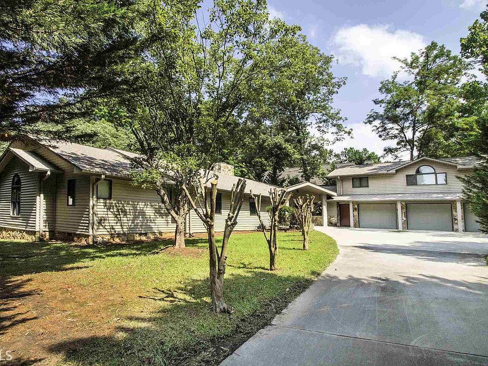 This home is all on one level, with exception of finished area above garage. Lot is gentle slope to water with covered dock and nice view of lake with good water. This location is not something you find everyday and home is move in ready. Master has large walk in closet and separate tub and shower plus office or sitting area. You will find ample bedrooms and bathrooms as well as sun room and large screened in porch. Did I mention the 3 car garage? Above garage are two additional bedrooms with private kitchen and living area. Storage room on this level is large enough for a third bedroom if needed. Between main living area and garage is a bonus room which currently has a pool and ping pong table so plenty of space to entertain.