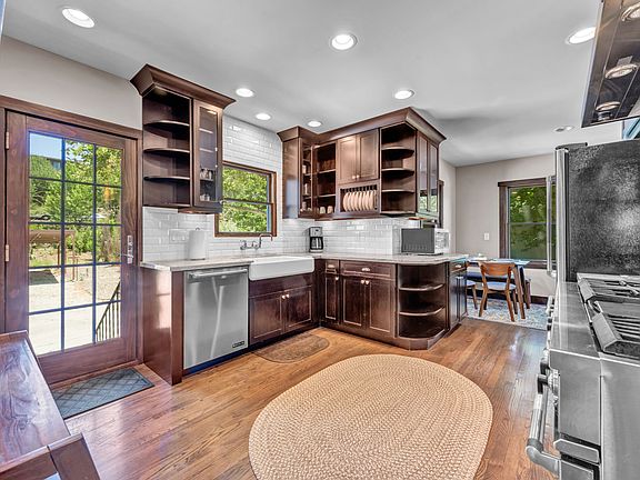 The chef's kitchen is a true highlight, featuring granite countertops, high-end appliances, and thoughtful touches that make cooking a joy. Cozy up by the wood-burning fireplace in the living area, where contemporary finishes meet timeless warmth to create a perfect ambiance.
