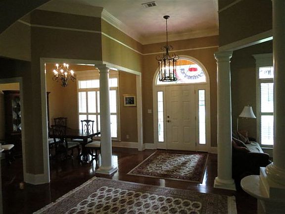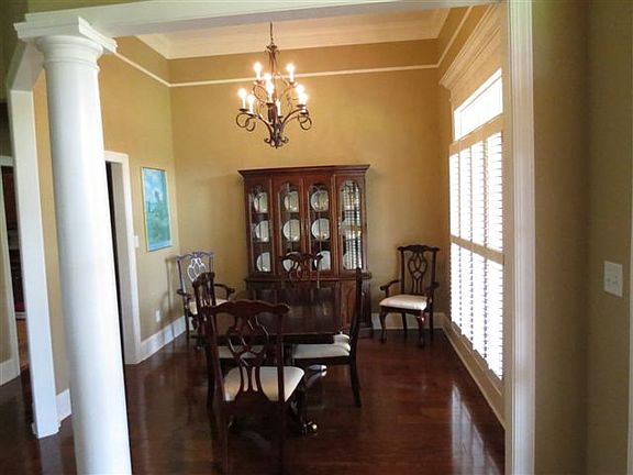FALL IN LOVE! This exceptional home in River Pointe Plantation will capture your heart. Nestled at the end of a quiet cul-de-sac, you can enjoy a view of the golfcourse from one angle, but also enjoy nature from a beautiful covered porch. This custom-built home sits tall on a crawl space foundation with beautifully appointed porches, and columns. A grand foyer welcomes you to a large great room, formal dining room, and an office/sitting room flanked by columns. The interior features beautiful wood floors, decorative mouldings, stately columns, and tall smooth ceilings. Master bathroom is large with granite counters, whirlpool tub and tiled shower, walk-in closet, toilet room, and opens to a large master bedroom. Additional bedrooms are good size with access to attractive hall bath. Great kitchen features wood stained cabinets, stainless appliances, granite counters, and opens to breakfast room that overlooks a charming covered backporch and beautifully landscaped backyard.