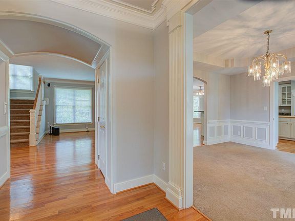 Southern Charm in fabulous North Raleigh location! Main floor features a private Office/Music or Formal Living Room. Dining Room w trey ceiling & arched doorways. Spacious Kitchen has SS Bosh appliances, center island & is open to Family Room. First floor owner's retreat w/ large master bathroom incl. whirlpool tub, walk in closet w second laundry. Second level features 3 large Beds & 2 full baths. Finished basement, walk up attic and fenced yard w Pergola. Home also has dual 200 amp home generator feed.