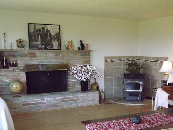 - Fireplace features: wood stove
