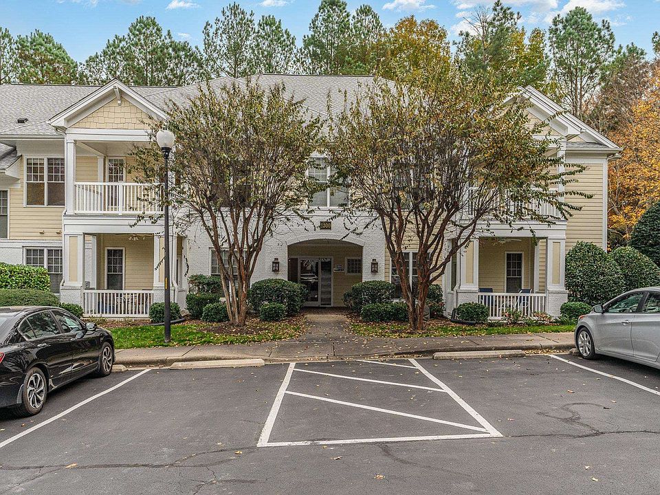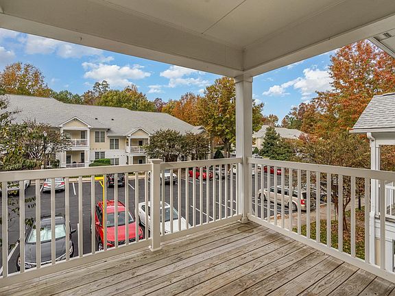 Move in ready, second floor condo in Falls River! The open kitchen, living & dining plan extends onto the covered porch... perfect for a second sitting area outdoors. The home has a nice ceiling height and powder room. The primary bathroom includes a laundry closet. This is a lovely, landscaped neighborhood convenient to restaurants and shopping and minutes to Wake Med North. The location is very accessible to 540. Keypad entry to main building. Sprinkler system in building. No elevator.