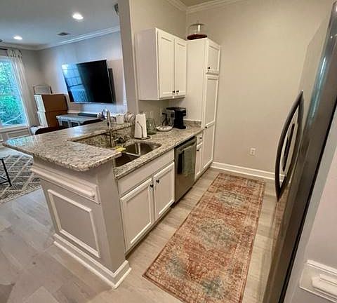 This is a quiet, and maintenance free community. Exterior and common areas are extremely well maintained. Right beside WakeMed North and 540. Fully renovated and updated 2nd floor Condo with secure coded access to building. Freshly painted walls/ceilings. Floors have recently been refinished. Large family room with dining area. Open granite kitchen with great cabinet space. Spacious master bedroom with private master bath. 2021 Stainless appliances. Nice covered balcony (current furniture included). Walking distance to shopping, great restaurants, and greenway. No pets please. Minimum lease term is currently 12 months or longer. Owner pays for: Sewer/Septic, Water, Trash/Disposal, Landscape, Lawn Maintenance. Tenant pays for: Electric, Phone, Internet (AT&T Fiber), Cable We have two parking spaces for the unit.