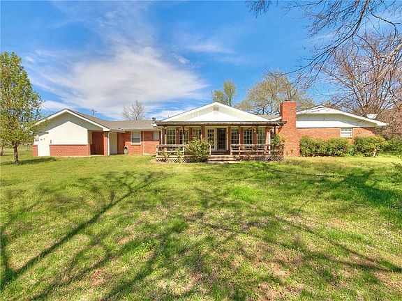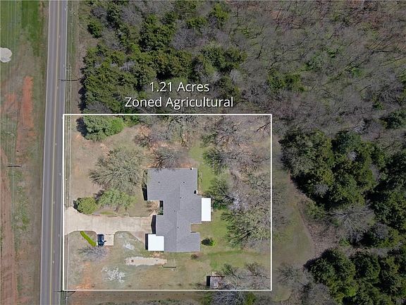 1.21 Acres zoned agricultural right across the street from Noble High School! 2 car garage with carport, shed, and a huge covered back patio to enjoy your tree-lined property from! Gigantic kitchen with a wall of windows overlooking the back yard, with double ovens, and more cabinets than you could imagine and completely open to the second living room. Front living area is huge and could be used as a formal dining at one end. Master suite has crown molding in the bedroom, and a walk-in closet, built-ins, and a large walk-in shower. Second bath has a walk-in tub! Covered access to the large, outdoor storm shelter, newer HVAC system, shed, and an attached storage room off the back of the house as well. Large laundry room with tons of cabinets and built-in desk/mail area just outside the laundry room. Tons of storage! 4th bedroom is huge and separated from the other bedrooms. Check out our 3D virtual tour!