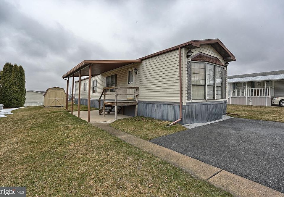 Nice manufactured home in a 55+ community. Home features: large living room, spacious eat in kitchen with breakfast bar, two bedrooms, one full bath, and laundry closet. All appliances included. Exterior features covered patio, 8' X 12' storage shed and two car paved off street parking. Lot rent is $332.00 per month plus $13.75 base water per month. Park approval is required