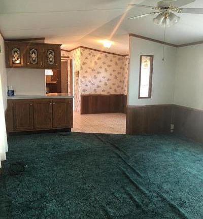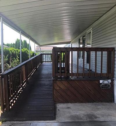Great single wide that features 3 BR and 2 BA with master suite stall shower, vanity, toilet and extra wide doorways. Nice, open floor plan with a spacious kitchen and the conveniently located laundry. Enjoy time outside on the beautiful covered porch with the handicap accessible ramp. The shed and all appliances will remain. This is a 50+ age community and no pet policy. Lot Rent $332.00 monthly.