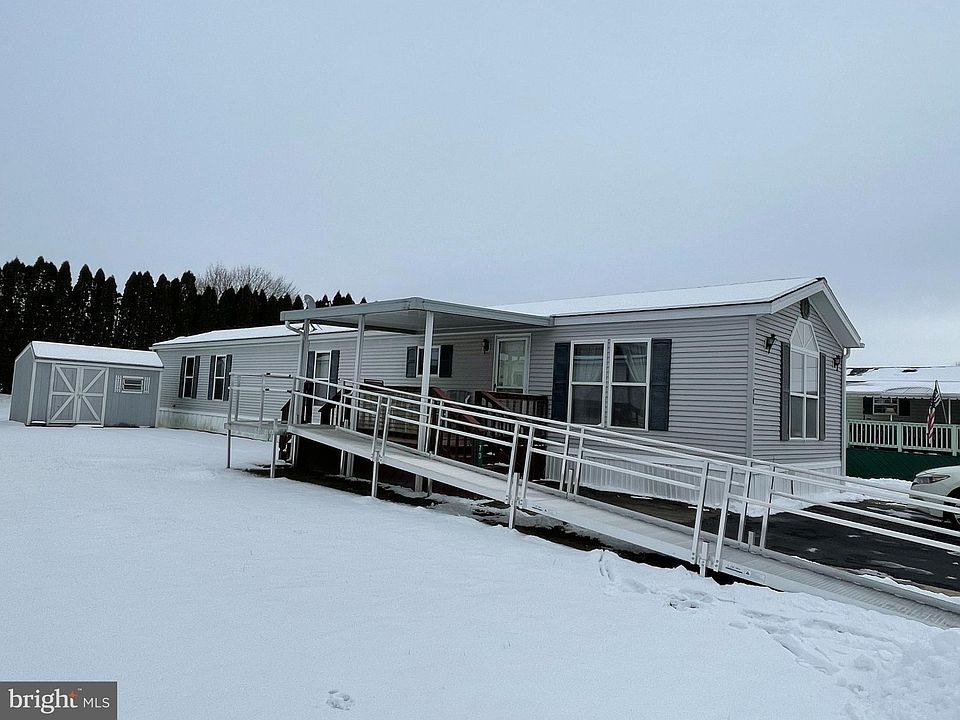 Nice sized rooms in this 2 bedroom, 2 bath manufactured home in a 55+ community. Master suite includes large bedroom, W/I closet and large private bath with shower stall and garden soaking tub. Large kitchen with peninsula and plenty of cabinets and counter space for your kitchen needs. There is a ramp for easy access and covered deck for outdoor relaxation. Also a large shed and parking for 2 cars. Lot rent includes sewer and trash. All applicants must be park approved. No pets are allowed.