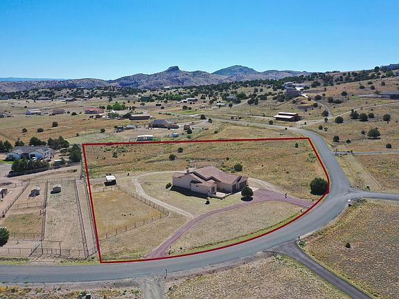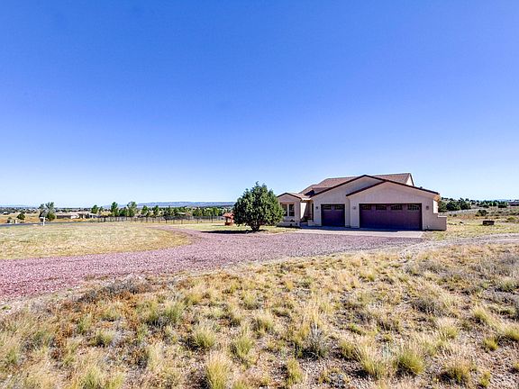 Gorgeous home in desirable Rimrock Subdivision. This bright and open home has all the beautiful touches you're looking for. Your entry brings you through a Large custom door w/a glass surround. The high ceilings and 8' foot Knotty Alder doors throughout give it a grand feel. The Great Room w/tile floors is perfect for entertaining and enjoying your evenings in front of the fireplace. The private Master bedroom has a spa-like bathroom with a walk-in closet. Kitchen boasts custom stained Hickory cabinets, Granite counters and Stainless appliances. Large laundry and pantry. Over-sized 3 car garage. Enjoy your coffee and take in the views of Granite Mountain on the front pavered patio. Covered back patio w/views of Little Thumb Butte. A Round pen and Horse Stalls with pasture for the horses.