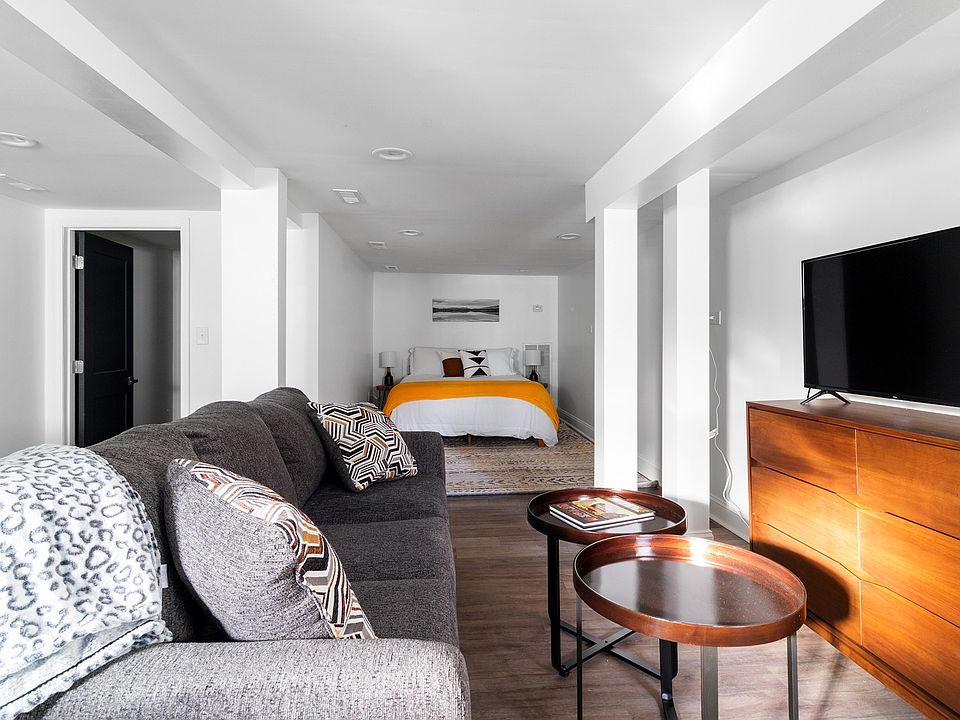 Be the first to call this fully furnished, MONTH TO MONTH efficiency apartment yours! Fully furnished, utilities (including internet) included. Unit will be offered exactly as pictured, and includes queen size bed, sleeper sofa and dining area. The unit does not have a full kitchen but does include a kitchenette with adorable retro fridge and microwave, toaster oven, and keurig. Pets ok with approval and non refundable pet fee. Rental application in links.